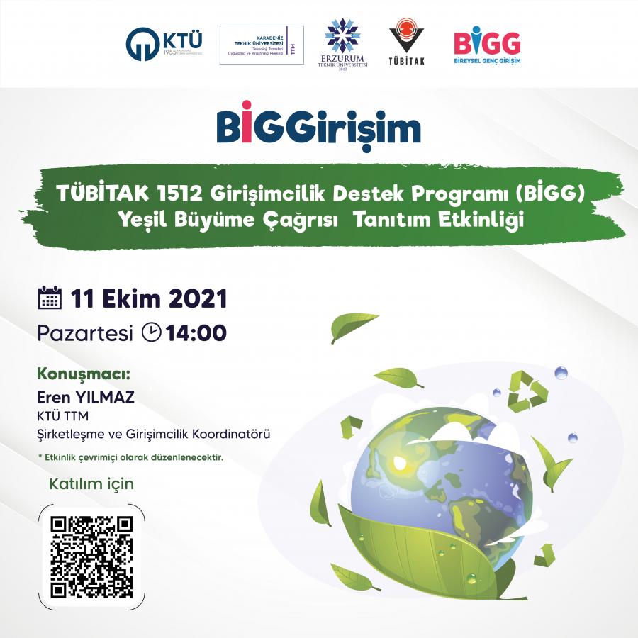 TÜBİTAK 1512 Girişimcilik Destek Programı (BİGG) Yeşil Büyüme Çağrısı Tanıtım Etkinliğine Davetlisiniz!