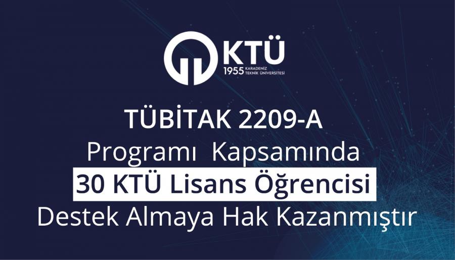 TÜBİTAK 2209-A Üniversite Öğrencileri Araştırma Projeleri Destekleme Programı kapsamında Karadeniz Teknik Üniversitesi’nde öğrenim gören 45 adet lisans öğrencisi proje başvurusunda bulunmuştur. Üniversitemizin Tarih, Yazılım Mühendisliği, Tıp, Sosyoloji, Metalurji ve Malzeme Mühendisliği, Elektrik-Elektronik Mühendisliği, İngiliz Dili ve Edebiyatı ve Eczacılık bölümlerinde öğrenim gören 30 lisans öğrencimiz bu program kapsamında desteklenmeye hak kazanmıştır. Projeleri desteklenmeye hak kazanan öğrencilerimizi ve danışmanlarını tebrik eder başarılarının devamını dileriz.