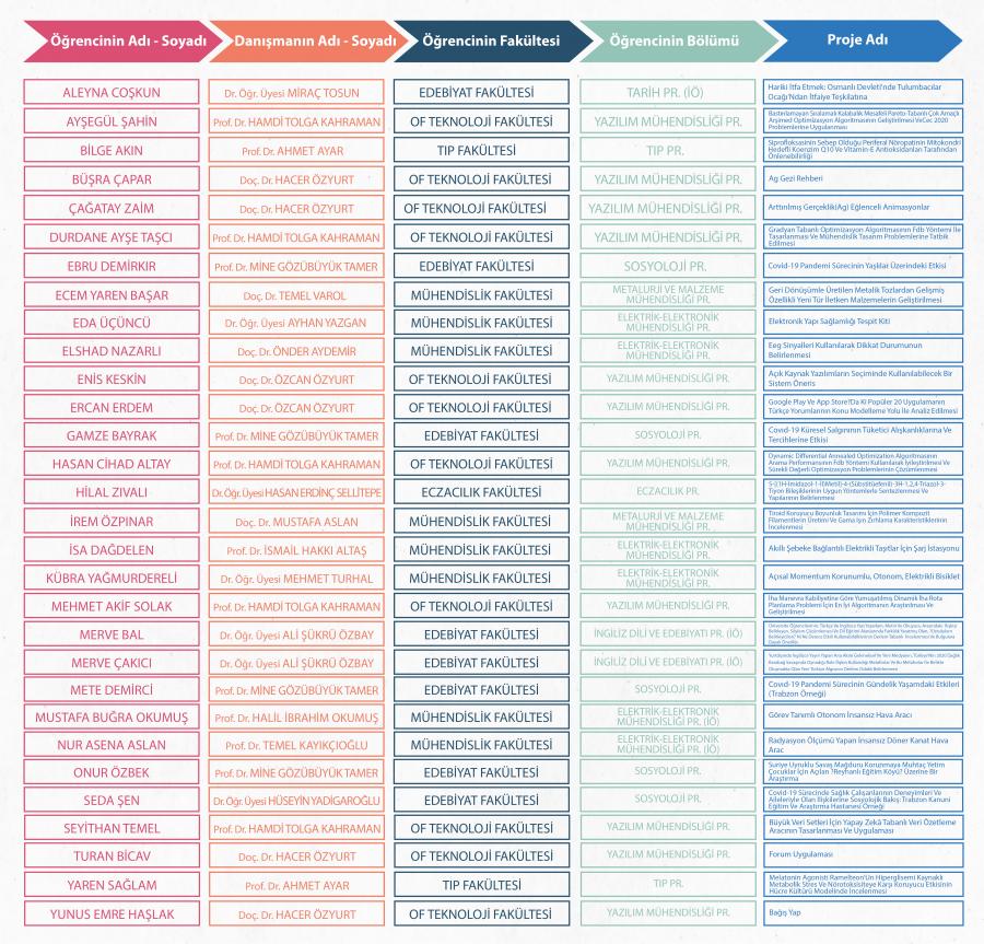 TÜBİTAK 2209-A Üniversite Öğrencileri Araştırma Projeleri Destekleme Programı kapsamında üniversitemizin 8 farklı bölümlerinde öğrenim gören 30 lisans öğrencimiz desteklenmeye hak kazandı. Projeleri desteklenmeye hak kazanan öğrencilerimizi ve danışmanlarını tebrik eder başarılarının devamını dileriz.