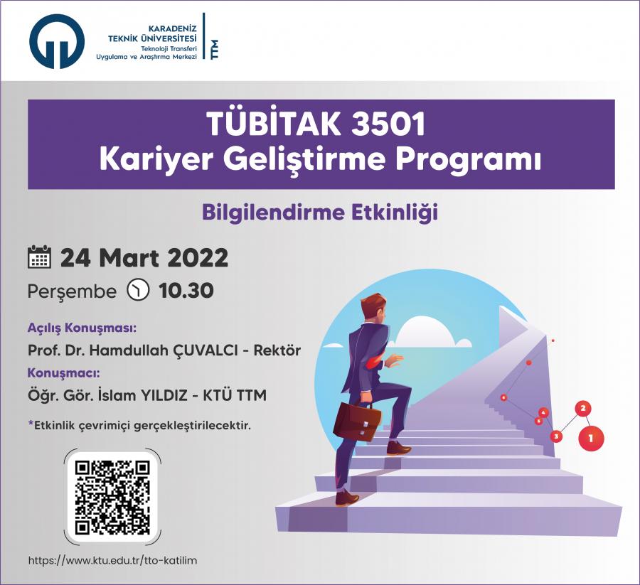 Kariyer Geliştirme Programı (3501) kariyerlerine yeni başlayan doktoralı bilim insanlarının çalışmalarını proje desteği vererek teşvik eden, hem genç bilim insanlarının kariyerlerini araştırmacı ve eğitimci olarak en iyi şekilde sürdürmeleri, hem de bilimsel düzeyimizin geliştirilmesine yönelik bir programdır.