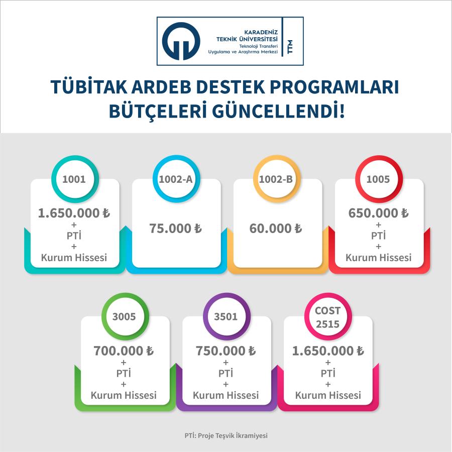 TÜBİTAK Araştırma Destek Programları Başkanlığı (ARDEB) kapsamında yürütülmekte olan Destek Programları’nın bütçeleri güncellenmiştir.