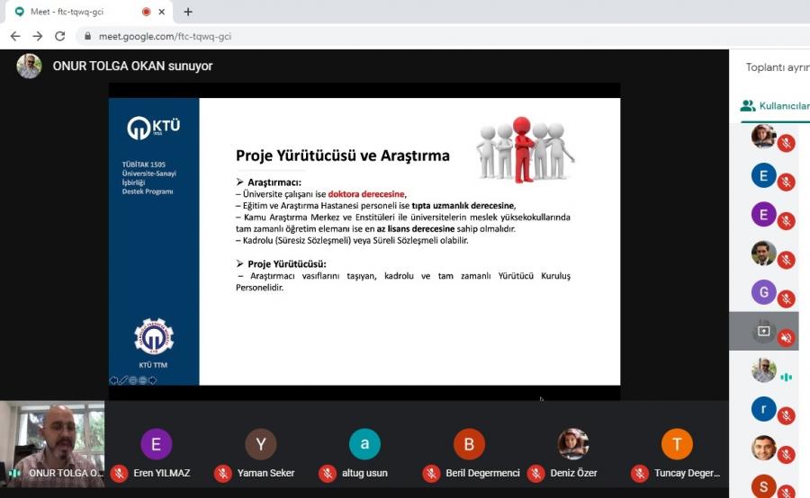 KTU TTM tarafından TÜBİTAK TEYDEB 1505 ÜNİVERSİTE-SANAYİ İŞBİRLİĞİ DESTEK PROGRAMI hakkında bilgilendirme etkinliği düzenlendi. Eğitime KTÜ akademisyenlerinin yanı sıra bölge üniversitelerinden ve bölgede yerleşik işletmeciler katılım sağladı.