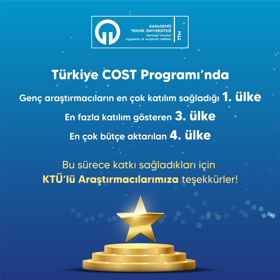 Türkiye, 3.084 Çalışma Grubu üyesi ile önemli bir üye sayısına ulaşırken COST ağ faaliyetlerine 1.113 bireysel katılımla bu alanda en başarılı 5. ülke oldu. 2022 yılında aktarılan bütçe bazında yaklaşık 1,5 Milyon Avro ile ülkemiz COST üyesi 41 ülke arasında en çok bütçe aktarılan 4. ülke olmayı başardı.