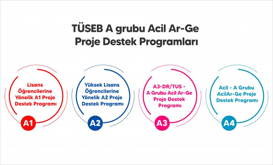 Türkiye Sağlık Enstitüleri Başkanlığı tarafından A grubu Acil Ar-Ge Proje Destek Programı altında 4 alt program mevcut olup bu programlar Lisans, yüksek lisans ve doktora/tıpta uzmanlık öğrencileri ile öğretim üyelerine yöneliktir. Programların başvuruları sürekli açık olup bütçeler, başvuru alanları, başvuru koşulları ve süreler değişiklik göstermektedir.
