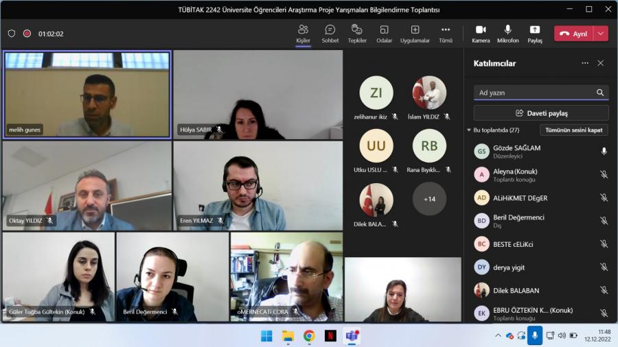 Üniversitemizde TÜBİTAK 2242 Üniversite Öğrencileri Araştırma Proje Yarışmaları Çevrim İçi Bilgilendirme Toplantısı Gerçekleştirildi