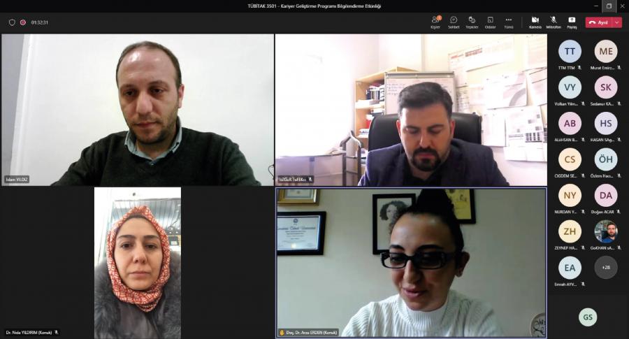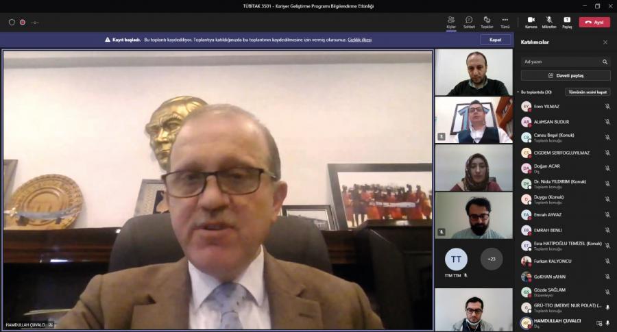 KTÜ TTM tarafından akademisyenlerimize yönelik; Üniversitemiz Rektörü Prof. Dr. Hamdullah ÇUVALCI'nın açılış konuşmasını yaptığı, Öğr. Gör. İslam YILDIZ’ın TÜBİTAK 3501 - Kariyer Geliştirme Programı tanıtımı ve yapılan değişiklerle ilgili bir sunum gerçekleştirdiği çevrimiçi bilgilendirme etkinliği düzenlendi.