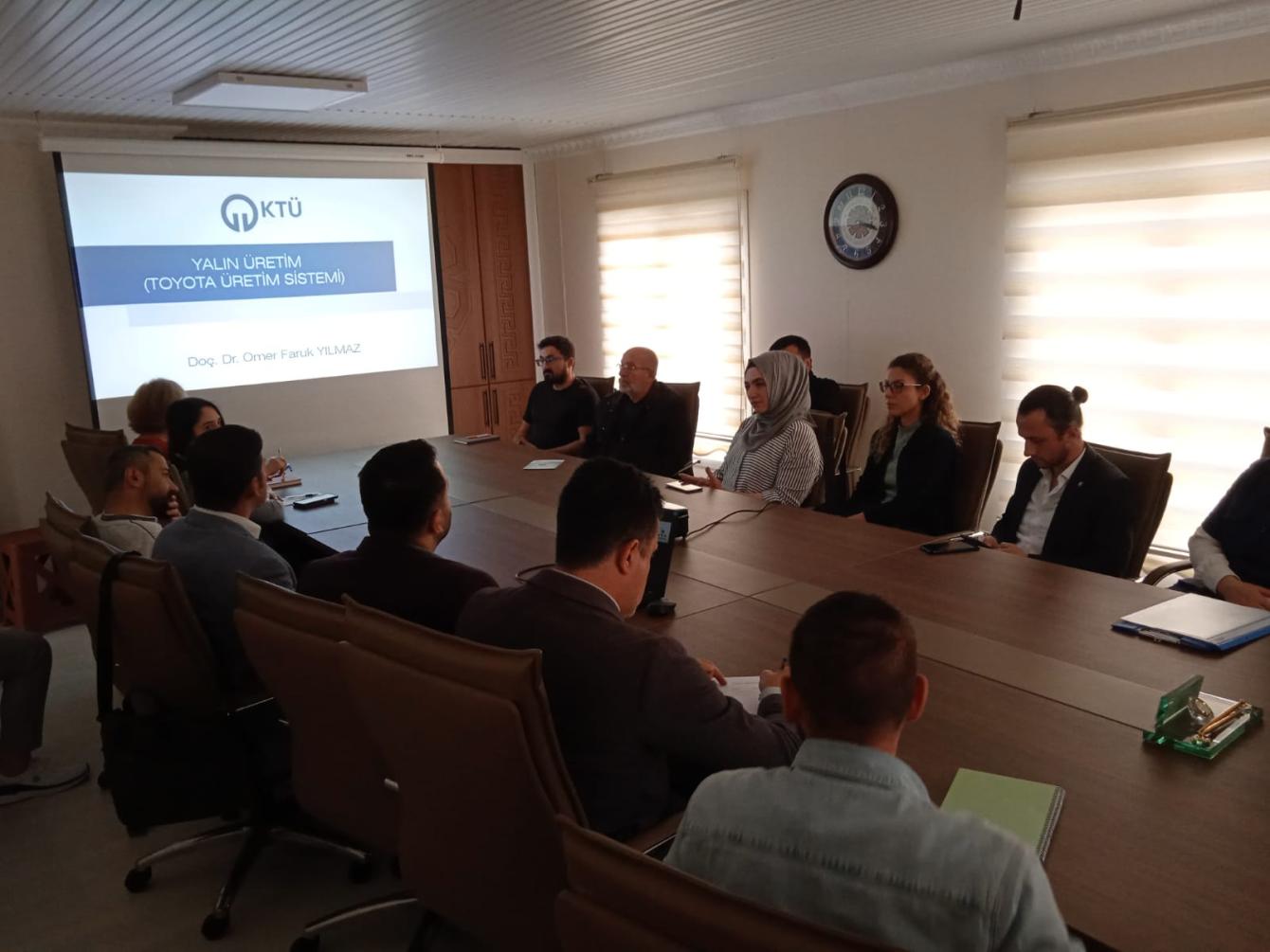 Toplantıda öncelikle Doç. Dr. Ömer Faruk Yılmaz tarafından Yalın Üretim süreçlerinin detaylı bir sunumu gerçekleştirilerek firmaya uygulanan model katılımcılara detaylı bir şekilde aktarıldı. Firma sahibi Serdar Alemdar, bu projenin işletmesine sağladığı kazanımları ve deneyimlerini samimi bir şekilde paylaştı.