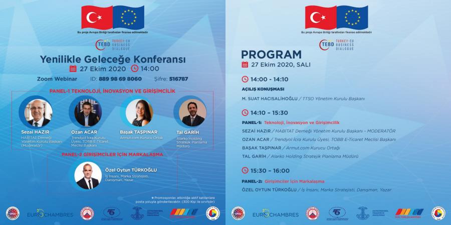 KTÜ'nün iştirakçı olarak yer aldığı, Trabzon Ticaret ve Sanayi Odası, Proje Koordinasyon Ofisi tarafından yürütülen Konsept İnovasyon Ağı projesi kapsamında Trabzon'da yenilikçi girişimcilik fikrine hayatın her kesiminden insanın ilgisini çekmek için Teknoloji, İnovasyon ve Girişimcilik temalı Yenilikle Geleceğe Konferansı çevrimiçi olarak gerçekleşecektir. HABİTAT Derneği Yönetim Kurulu Başkanı Sayın Sezai HAZIR'ın moderatörlüğünü yapacağı Yenilikle Geleceğe Konferansı'nda Trendyol İcra Kurulu Üyesi, TOBB E-Ticaret Meclisi Başkanı Sayın Ozan Acar, Armut.com Kurucu Ortağı Sayın Başak TAŞPINAR, Alarko Holding Stratejik Planlama Müdürü Sayın Tal GARİH ve İş İnsanı, Marka Stratejisti, Danışman ve Yazar Sayın Özel Oytun TÜRKOĞLU konuşmacı olarak yer alacaklardır.
