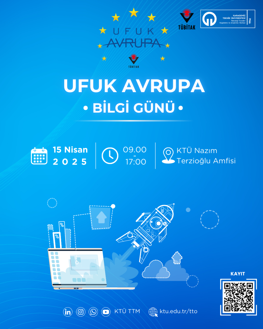 TÜBİTAK ve KTÜ TTM iş birliğiyle, üniversitemizde “Ufuk Avrupa Bilgi Günü” düzenlenecektir.