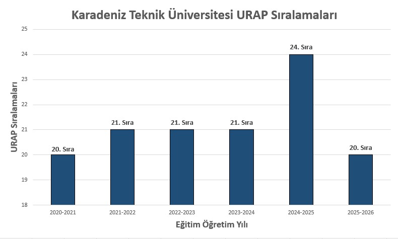 URAP'ın 2025-2026 Türkiye Sıralaması'nda Tıp Fakültesi olan ve Tıp Fakültesi olmayan üniversiteler olarak 2 ayrı sıralamanın yapıldığı listelerde 198 üniversite değerlendirildi. Tıp Fakültesi olan üniversitelerin sıralamalarında Karadeniz Teknik Üniversitesi 111 üniversite arasından 13. sırada yer alırken, özel üniversiteler dahil araştırma üniversiteleri içerisinde ilk 25 üniversitenin sıralandığı listede 4 basamak ilerleyerek 20. sırada yer aldı.