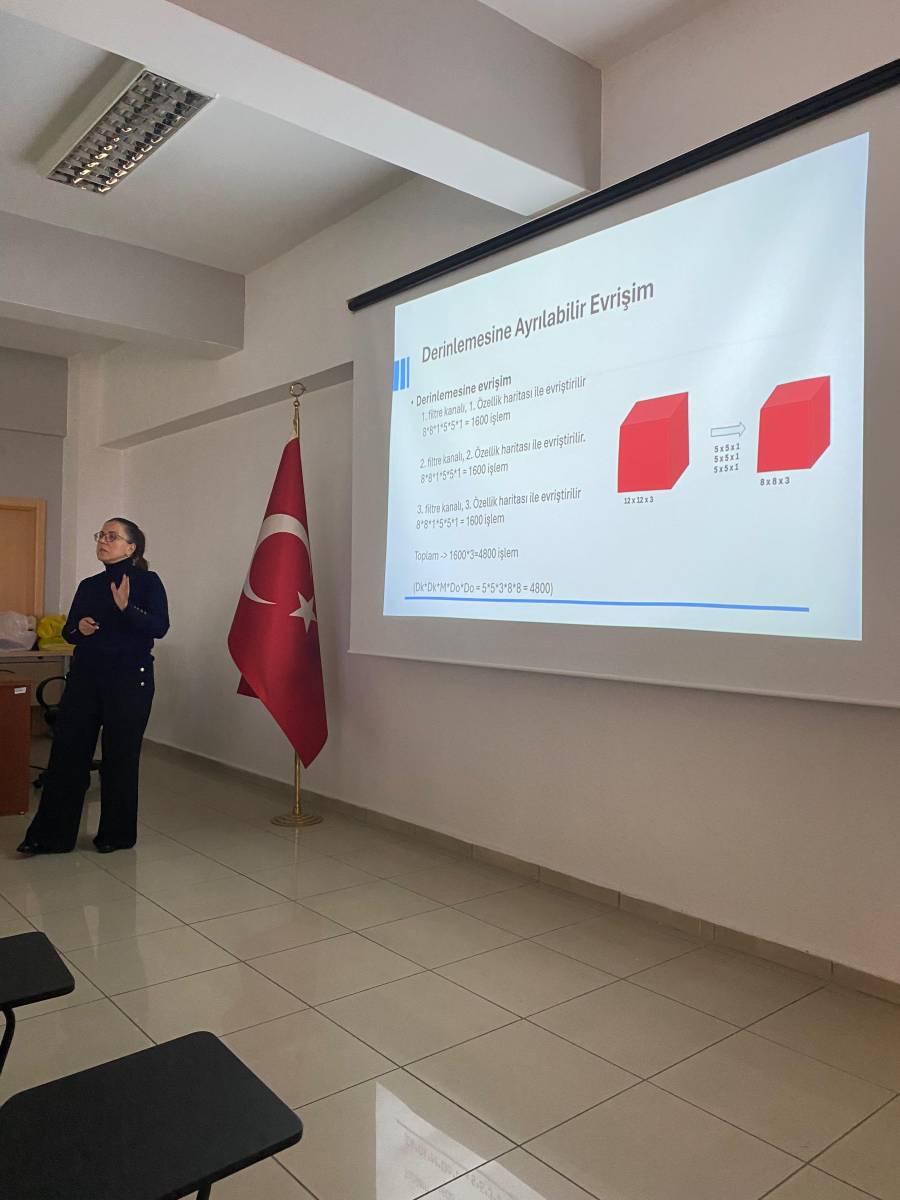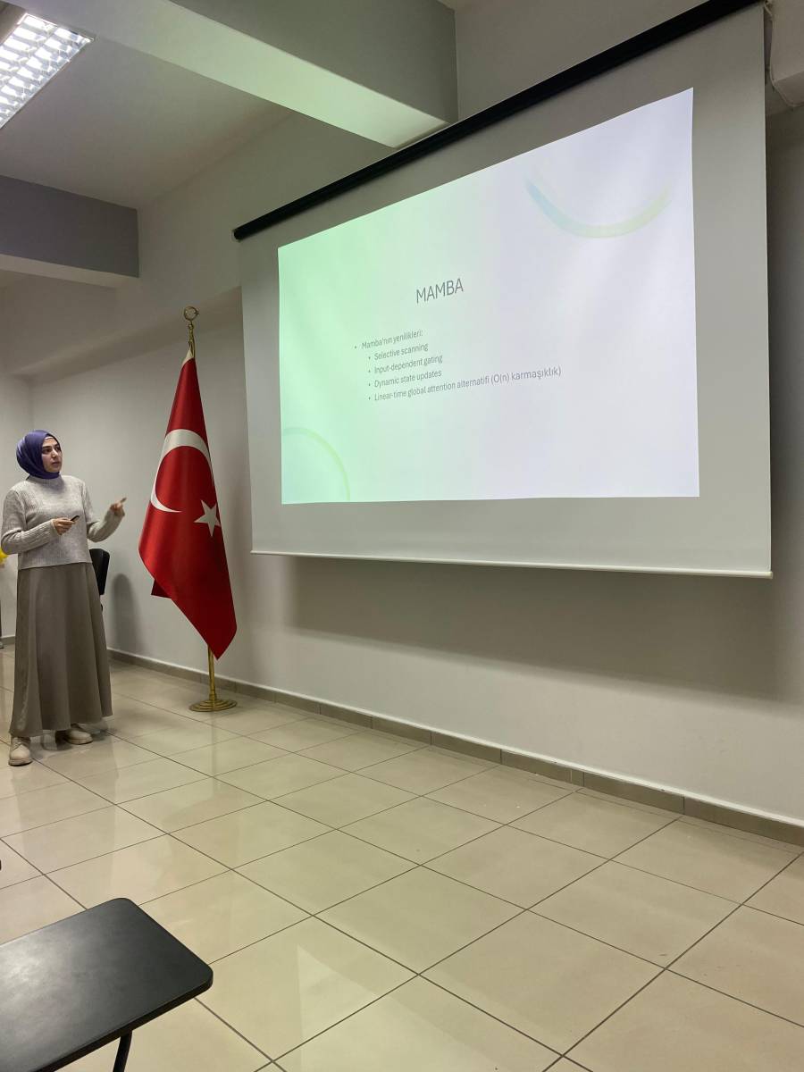 Bölümümüz tarafından 11 Aralık 2025 tarihinde “CNN’leri Anlamak” ve “Vision Mamba Mimarisinin Temelleri” başlıklı seminerler gerçekleştirilmiştir. Etkinlikte CNN yapısı, 1x1 evrişim, artık (residual) bloklar, CBAM, MobileNet v1–v3 gibi modern mimariler ile güncel bir model olan Vision Mamba ele alınmıştır.