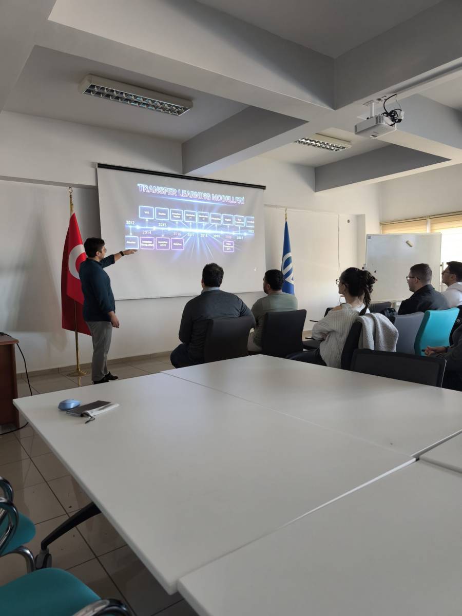 Seminerde CNN mimarilerinin temelleri, Transfer Learning yaklaşımı ve YOLO modeline giriş gibi modern derin öğrenme yöntemleri üzerine giriş düzeyinde bilgilendirmeler yapıldı. Katılımcılar, güncel yapay zekâ teknolojilerinin uygulama alanlarını ve öğrenme kaynaklarını örneklerle tanıma fırsatı buldu.