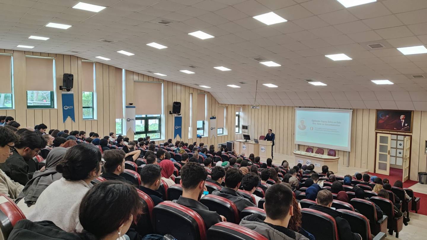 Karadeniz Teknik Üniversitesi (KTÜ) Yazılım Mühendisliği Bölümü tarafından düzenlenen "Yapay Zekâ ve Gelecek" başlıklı etkinlik, 27 Mart tarihinde KTÜ Fen Fakültesi Nazım Terzioğlu Amfisi’nde yoğun katılımla gerçekleştirildi.