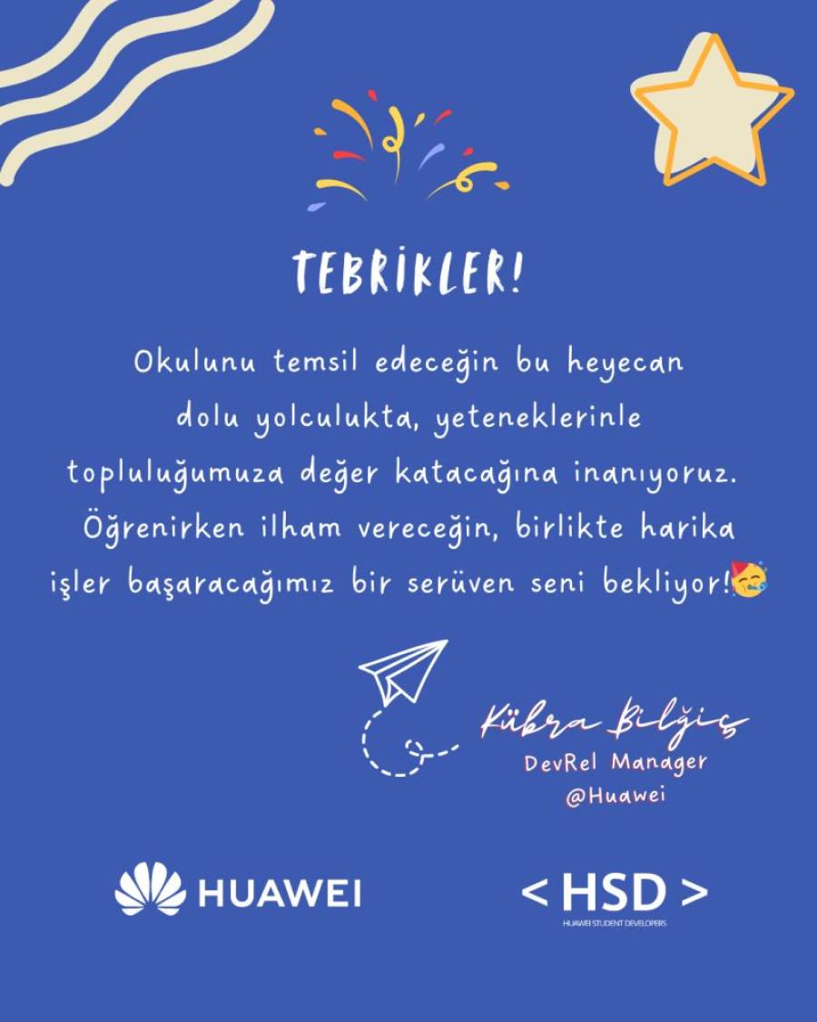 Öğrencilerimizden Yunus Emre Demirci,Huawei Student Developer (HSD) programı kapsamında kampüs elçisi olarak seçilmiştir.