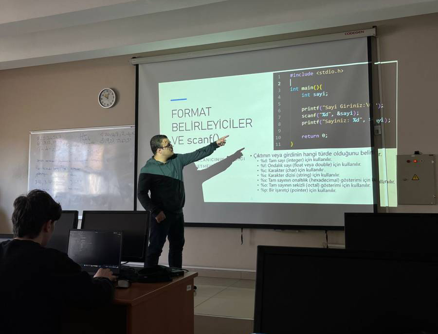 Yazılım Geliştirme Kulübümüz, yazılım temellerini pekiştirmeyi ve öğrencilere uygulamalı programlama deneyimi kazandırmayı amaçlayan “C Atölyesi” etkinliğini başarıyla gerçekleştirdi. Etkinlik, 31.10.2024 tarihinde bilgisayar laboratuvarında düzenlendi ve öğrencilere C programlama dilinin temel kavramları, veri yapıları, döngüler, koşullu ifadeler ve fonksiyon kullanımı üzerine kapsamlı bir uygulama fırsatı sundu.